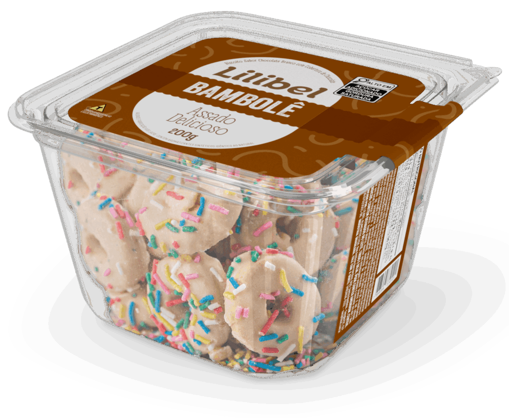 Ingredientes: Amido de milho (Geneticamente modificada a partir do Zea mays e/ou Bacillus thuringiensis e/ou Agrobacterium tumefaciens e/ou Streptomyces Viridochromogenes e/ou Neomicina fosfotransferase.), gordura vegetal 80% (Geneticamente modificada a partir do Agrobacterium tumefaciens elou Bacillus thuringiensis elou Delftia acidovorans elou Stenotrophomonas maltophilia e lou Streptomyces viridochromogenes elou Zea mays.), açúcar cristal, farinha de trigo enriquecida com ferro e ácido fótico, água, cobertura sabor chocolate (açúcar, gordura vegetal, cacau em pó, soro de leite em pó, emulsificantes lecitina de soja, poliricinleato de poliglicerol e aromatizantes), essência de chocolate branco e sal refinado.