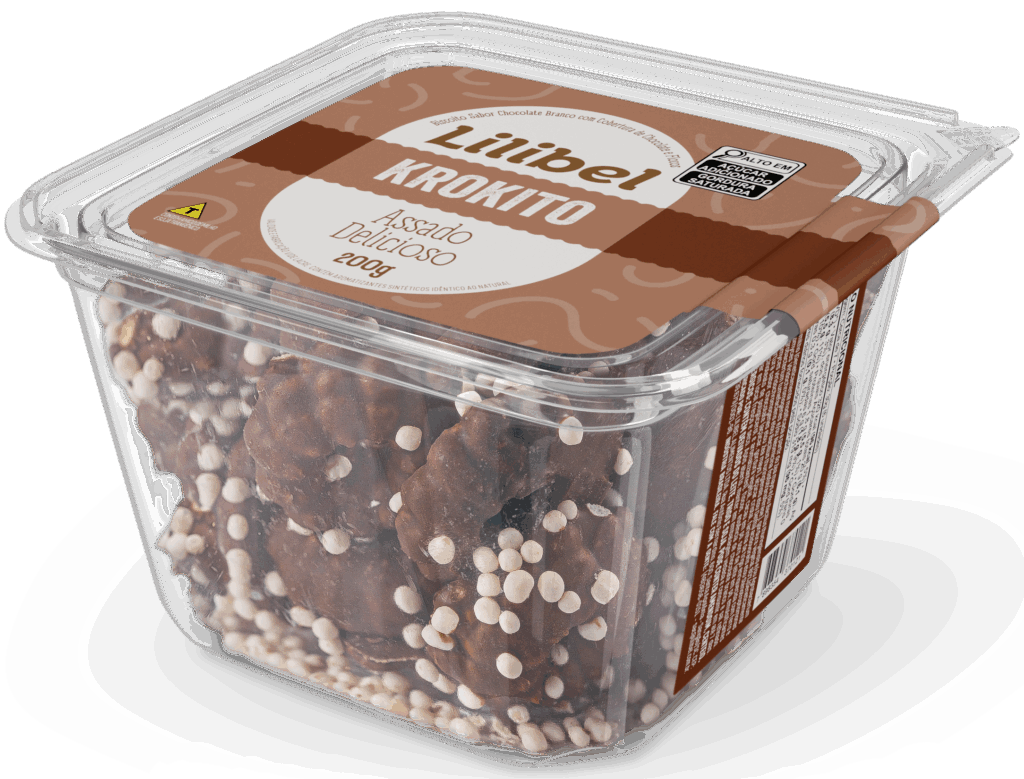 Ingredientes: Amido de milho /Geneticamente modificada partir do Zea mays e/ou Bacillus thuringiensis e/ou Agrobacterium tumefaciens e/ou Streptomyces Viridochromogenes e/ou Neomicina fosfotransferase.), gordura vegetal 80%(Geneticamente modificada a partir do Agrobacterium tumefaciens elou Bacilus thurinensis elou Delftia acidovorans elou Stenotrophomonas maltophilia e lou Streptomyces viridochromogenes elou Zea mays.), açúcar cristal, farinha de trigo enriquecida com ferro e ácido folico, água, cobertura sabor chocolate (açúcar, gordura vegetal, cacau em pó, soro de lete em pó, emulsificantes lecitina de soja, polirricinoleato de poliglicerol e aromatizantes, flocos, essência de chocolate branco e sal refinado. CONTÉM GLUTEM. ALÉRGICOS: CONTÉM DERIVADOS DO LEITE, TRIGO E SOJA. PODE CONTER AMENDOIM. CENTEIO, CEVADA E AVEIA.